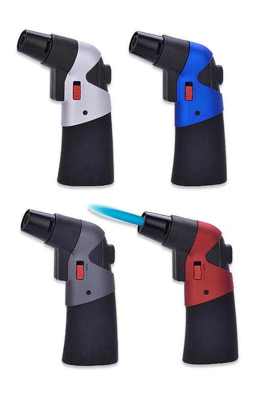 Jet-Feuerzeug aus mattierten Aluminium mit gummiertem Griff