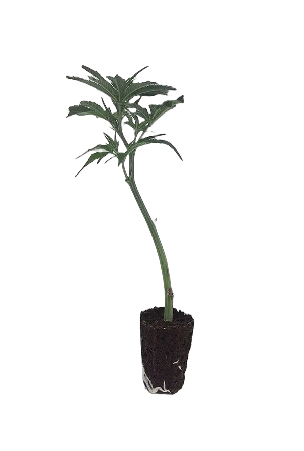 Die Pflanzen von OG Kush zeichnen sich durch dichte, harzige Knospen aus, die reich mit kristallinen Trichomen bedeckt sind. Die Blätter sind dunkelgrün mit auffälligen orangen Stängeln, was der Sorte ein attraktives Erscheinungsbild verleiht.
