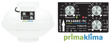 Prima Klima EC Ventilator 160mm 1180m³/h Temp./ Speed Controlled